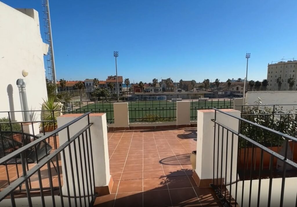Het grote gemeenschappelijke dakterras van 145 m² biedt adembenemend uitzicht op de Middellandse Zee. Ontspan op de ligbedden, geniet van een picknick of drink een cocktail terwijl de zon ondergaat. El Cabanyal is een kleurrijke wijk vol karakter, met een prachtig breed strand en een rijke geschiedenis.